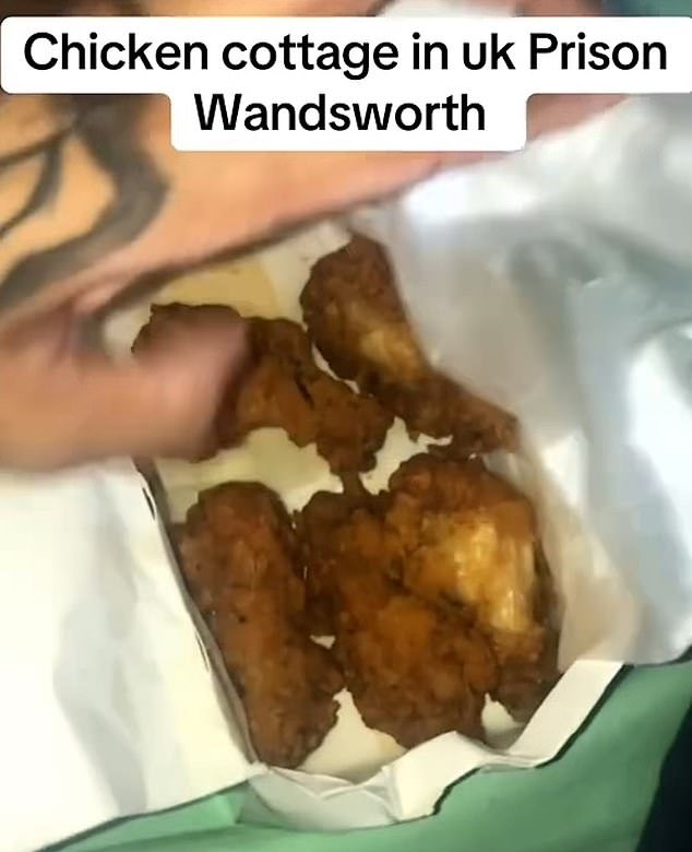 En un vídeo publicado en TikTok, un recluso se jacta descaradamente de su comida para llevar en Chicken Cottage.