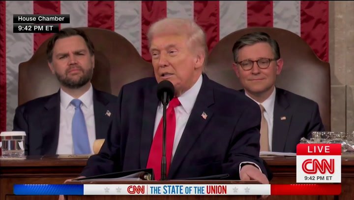 La jueza de la Corte Suprema nombrada por Donald Trump, Amy Coney Barrett, fulminó con la mirada al presidente mientras éste criticaba el fallo de la Corte Suprema que eliminaba sus aranceles. Cuatro jueces estuvieron presentes en el discurso sobre el Estado de la Unión del presidente el martes, incluidos tres jueces que fallaron en contra de los aranceles. Las cámaras de la Cámara de Representantes capturaron un primer plano de Barrett sentado a unos metros de distancia y observando al presidente sin hacer muecas mientras se quejaba del fallo.