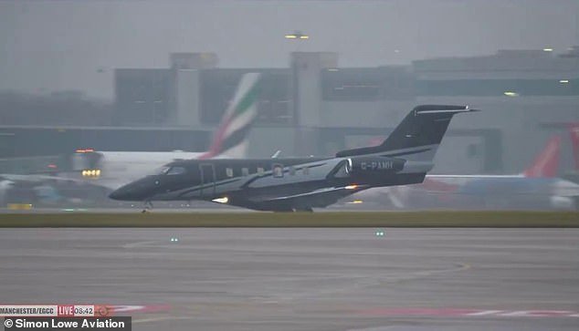 Semenyo salió de la costa sur a las 7.18 de esta mañana y llegó al aeropuerto de Manchester unos 40 minutos más tarde. Llegó en un jet privado negro.