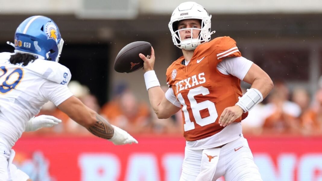Después de que el estado de Maning Ohio luchó para perder la temporada de Texas, con la misma entrega, con algunos lanzamientos equivocados, el Sarkisian arrojó su mecánica de ansiedad ante su movimiento.