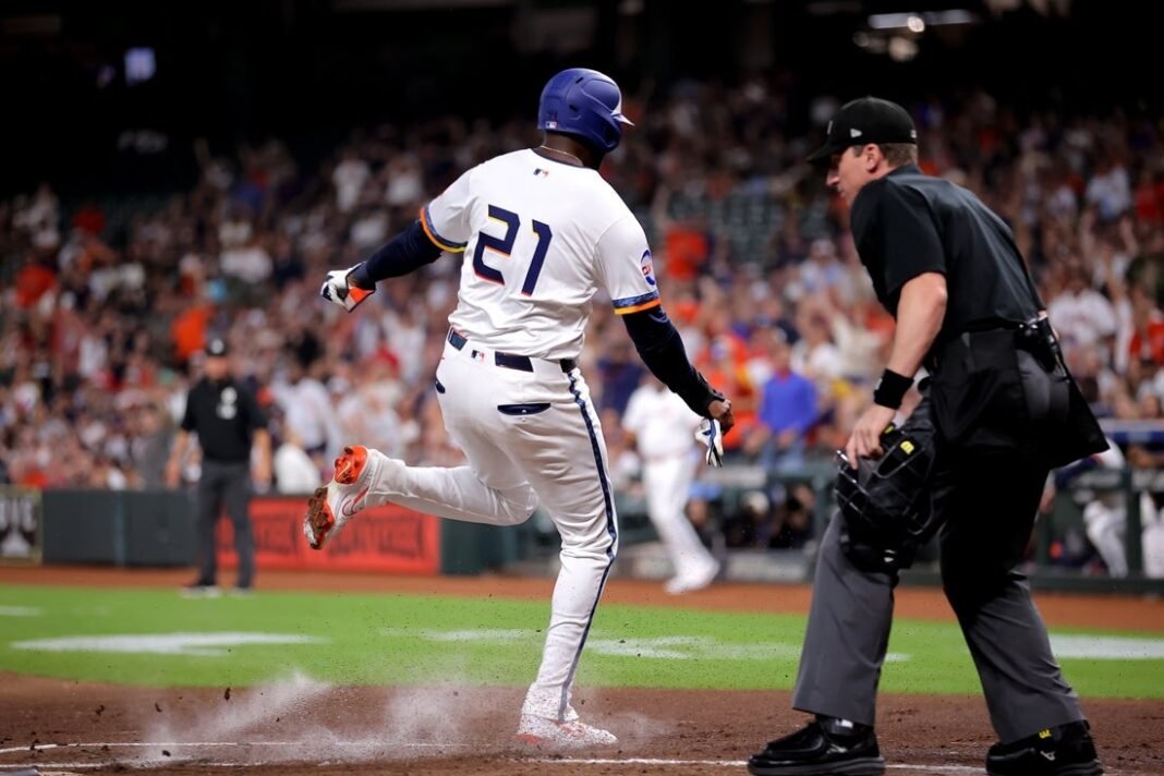 Después de la partida de Álvarez, los Astros avanzaron, llevaron a Jesús Sánchez desde el campo derecho hacia la izquierda y Jach Cole entró a la derecha.