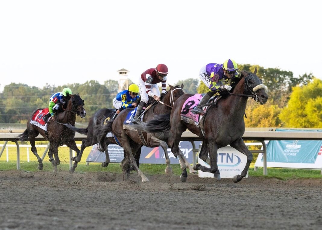 Bayeja #8 Hectares de IJAC Berios Riding el sábado de septiembre 2025, ganó $ 1,000,000 de ojo de grado Pennsylvania Derby en Persing Beneselm en 2025. Foto de Taylor Ezdis/Equi-Foto.