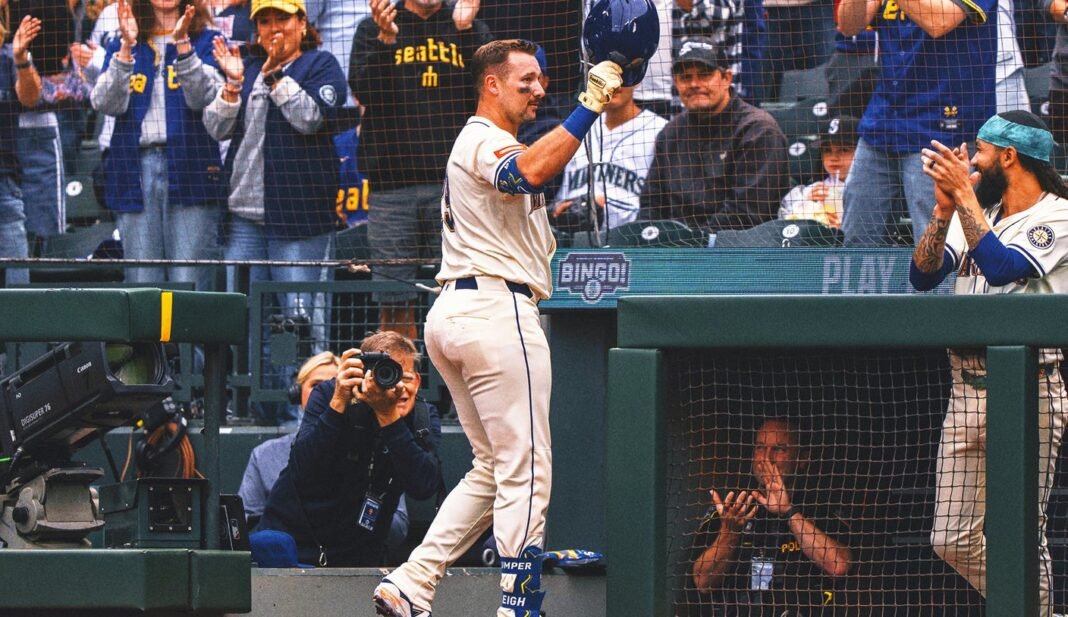 El domingo, el Cal Rally Mikey empató la temporada de Mikey Mantle por 54 jonrones con un bateador de interruptores con la primera entrada contra Los Ángeles Angeles.