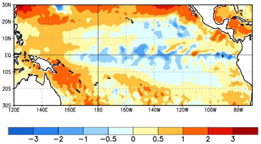 Cuando la temperatura del océano cambia, provoca cambios en los modelos de aire. Históricamente, La Niña provoca un cambio en el Océano Pacífico Norte y la corriente en chorro en el Pacífico Norte y América del Norte. Eso reduce las posibilidades de lluvias en la parte sur de los Estados Unidos y aumenta la oportunidad de inviernos húmedos en el norte de los Estados Unidos.