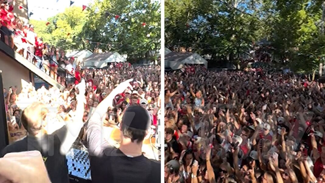 Obviamente, los mockers de Chains apenas deambularon a la fiesta … y dado que Fret ya había establecido una cabina para otros DJs, Alex Paul Y Drew Taggart Apenas hapod e hizo su trabajo: cada niño universitario sueña con el tipo de momento.