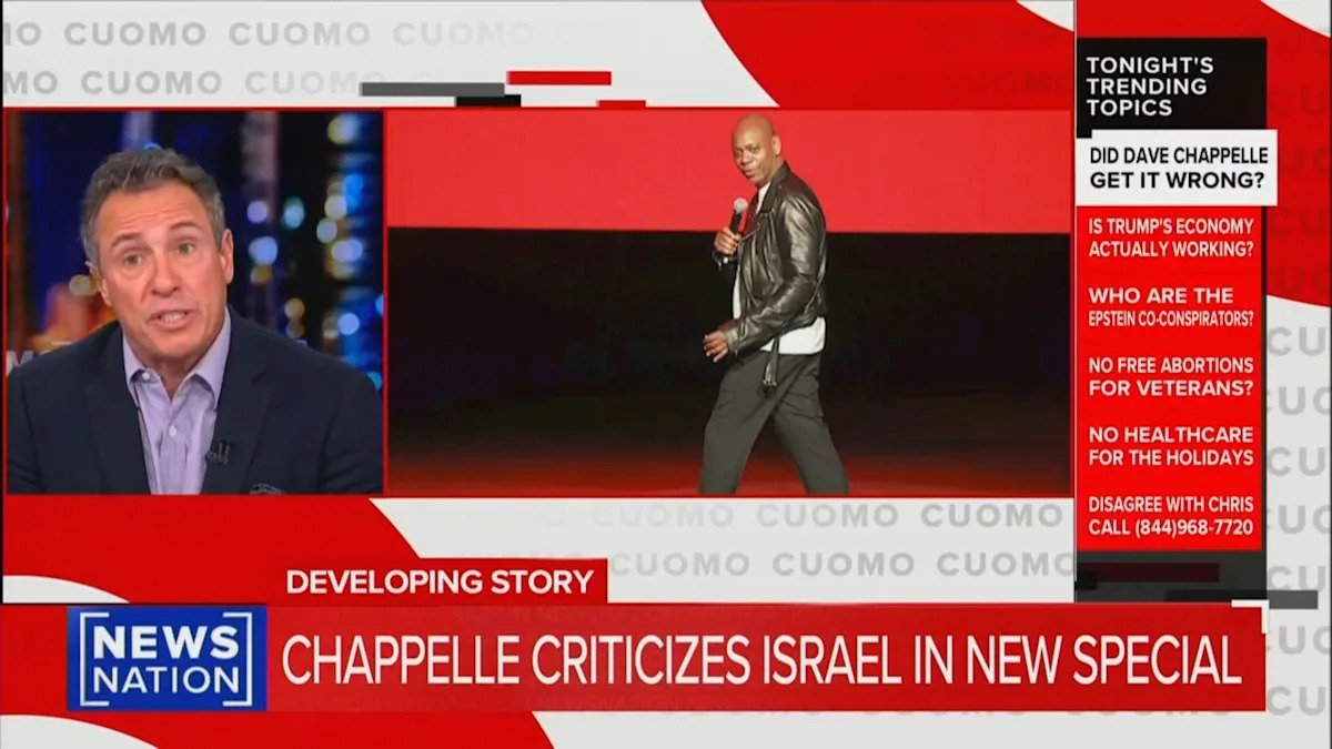 Al comentar sobre el reciente programa especial de comedia de Netflix de Chappelle, que terminó con el comediante haciendo una broma sobre Israel y dejando caer su micrófono, Cuomo se quejó de que muchos de los temas sobre los que Chappelle bromeaba sobre ellos “no eran cuestión de risa, y dependiendo de su punto de vista, gran parte de esto en particular probablemente no fuera divertido”.