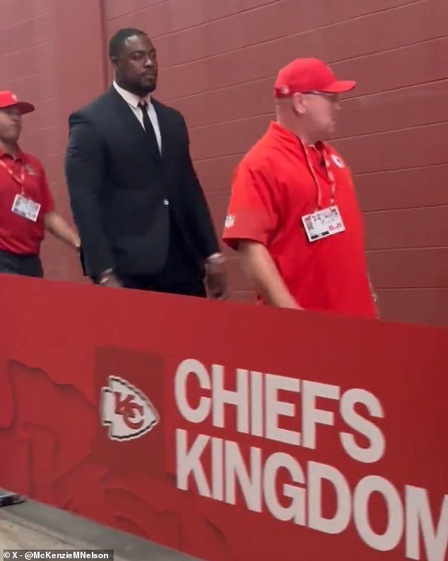 La estrella principal Chris Jones llegó al estadio Arhede para asistir al funeral de su canal después de volar en Mississippi. Jones fue al estadio menos de media hora antes del inicio.