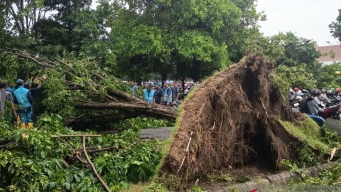 Según las observaciones de ANTARA, se vieron varios árboles caídos ingresando al área de la Terminal 1 del Aeropuerto Juanda desde el oeste.