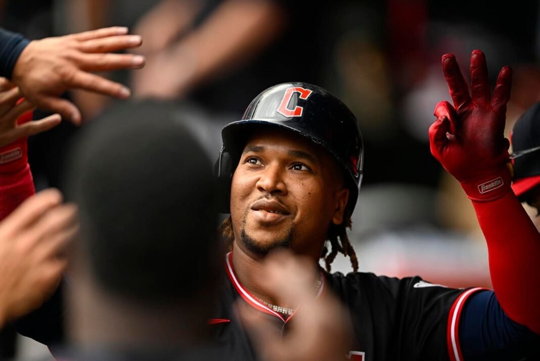 Miniapolis, Minnesota – 20 de septiembre: José Ramírez #11 Minnesoter celebra una sola casa contra los Minnesota Mellizos en las primeras entradas del campo Target en septiembre de 2025, 2025. (Foto de Stephen Maturen/Getty Fig.)