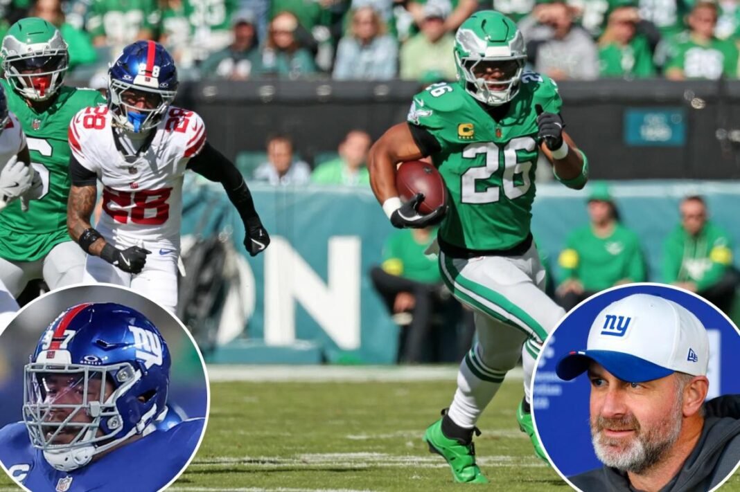 Siete días después, una segunda jugada en la defensa provocó un enorme agujero en el lado derecho y una carrera de touchdown de 65 yardas casi intacta para Saquon Barkley. Era una señal de lo que vendría. Los Eagles jugaron sin su mejor receptor abierto y su centro titular y todavía tuvieron dificultades para sumar puntos en una victoria por 38-20 en Philadelphia que expuso aún más un lado del balón de los Giants que no estuvo ni cerca de rendir al nivel esperado.