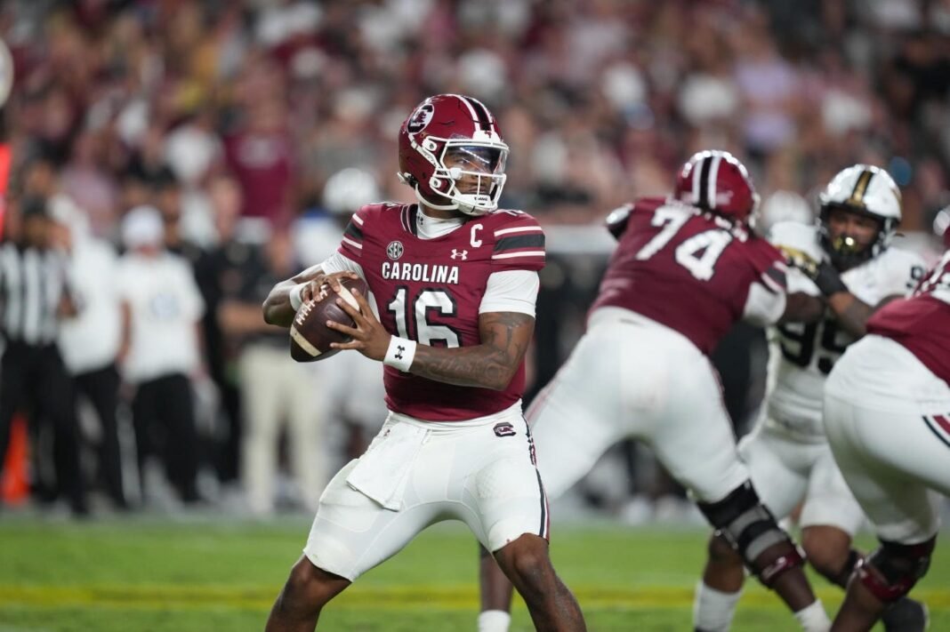 Colombia, Carolina del Sur – 7 de septiembre: los vendedores de Lanris de Carolina del Sur #16 durante un juego contra Vanderbilt Commodore en el estadio Williams -Brees el 7 de septiembre de 2012 en Colombia, Carolina del Sur. (Foto de Brendon Ross/Vanderbilt University/Gatety Image by University Figura)