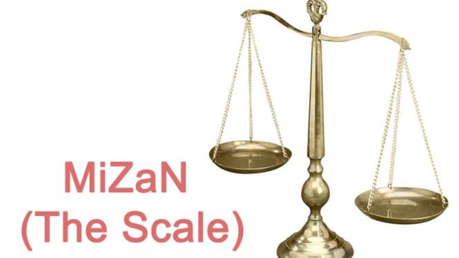 La palabra Mizan lingüísticamente significa balanza, y en la ley islámica se refiere a balanzas especiales que realmente existen, son reales y serán establecidas en el Último Día. La creencia en Yaumul Mizan es parte de la creencia en los últimos días, porque toda caridad, por pequeña que sea, será considerada sin que falte ni un solo detalle.