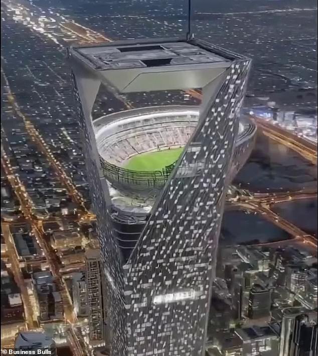 Los fanáticos del fútbol quedaron atónitos por un video que circula en las redes sociales y que parece mostrar los planes para que el primer ‘Sky Stadium’ del mundo se abra a tiempo para la Copa del Mundo de 2034 en Arabia Saudita.