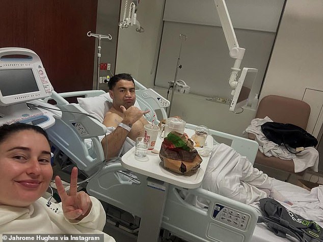 Hughes usó Instagram para compartir una foto de rayos X de su brazo fracturado, que muestra que sufrió una fractura limpia durante el choque de la Ronda 27 contra los Broncos.