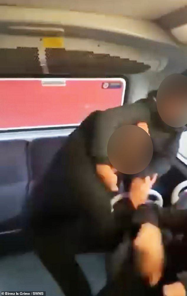 Las imágenes capturaron a la pareja confundida en la parte trasera del piso superior. Se puede ver a los dos golpeándose antes de que uno intente bloquear a su compañero de clase mientras sus amigos se burlan de ellos.