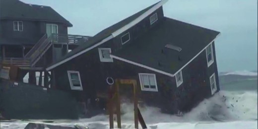 Las casas en los bancos externos caen hacia el océano desde fuertes surf