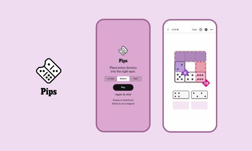 En Pips, tienes una cuadrícula de cuadros multicolores. Cada área coloreada representa una “condición” diferente que debes alcanzar. Tienes un número selecto de fichas de dominó que debes gastar llenando la cuadrícula. Tienes que usar todas las fichas de dominó y cumplir todas las condiciones para ganar. Hay niveles fácil, medio y difícil.