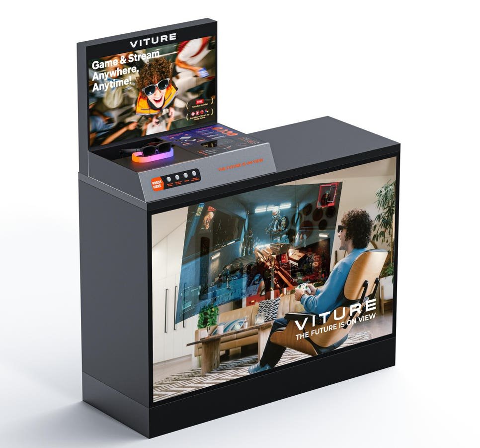 En Best Buy en Burbank, California, la demostración de Viture se encuentra junto a la tapa final Quest en la parte trasera de la tienda para televisores para juegos. Quest no está disponible para demostración, pero puede adquirir las gafas de visualización de video Viture e inmediatamente disfrutar de la experiencia de juego en pantalla grande, ver una película en 3D o experimentar la visualización en múltiples pantallas para aumentar la productividad.