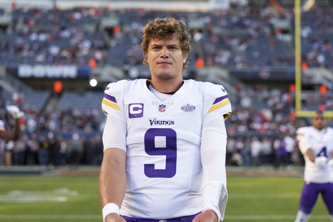 Chicago, Illinois – 8 de septiembre: McCarthy en el JEG de Minnesota Vikings #9, el 8 de septiembre de 2025 en Illinoi, frente a un partido de fútbol de la NFL contra el Solider Field en Solider Field. (Por la imagen …