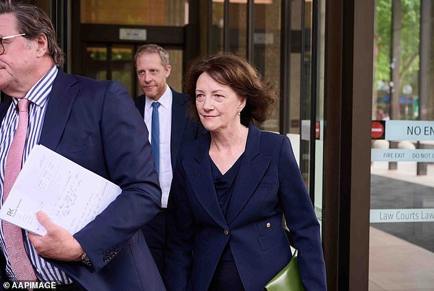 Fiona Brown demandará al gobierno federal por acusaciones de que no protegió a Brittany Higgins a raíz de las acusaciones. Se la fotografía saliendo del tribunal en Sydney el lunes.