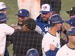 El Juego 7 de la Serie Mundial se convierte en un caos cuando la estrella de los Azulejos limpia los bancos después de ser golpeada por el lanzamiento de los Dodgers.