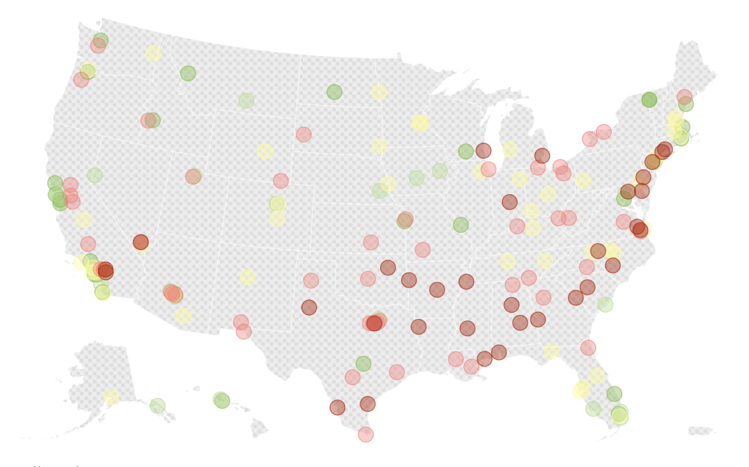 Sin embargo, varias ciudades han saltado con un promedio mucho más bajo. Birmingham, Alabama, llega a 593; San Bernardino, California, 592; Nework, Nueva Jersey, 591; Y Memphis, Tennessee, 590 A.