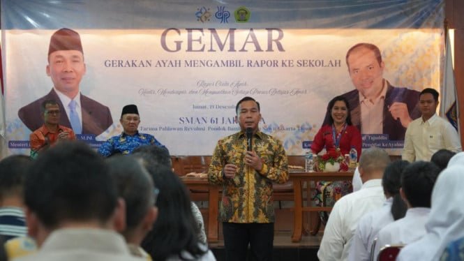 Este movimiento se vio en SDN Pondok Bambu 11 y SMAN 61 Yakarta mientras recogían las boletas de calificaciones el viernes 19 de diciembre de 2025. Los padres vienen a la escuela a recoger las boletas de calificaciones de sus hijos. Este movimiento promueve la implicación de los padres en la educación formal de los hijos.