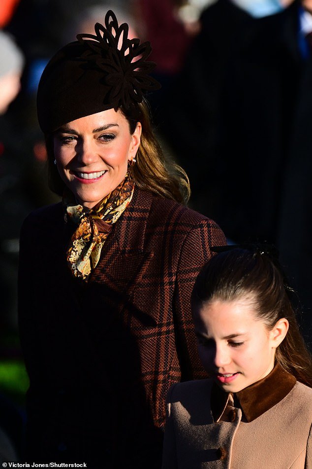 Kate muestra una amplia sonrisa cuando llega a Sandringham con la princesa Charlotte, de 10 años.