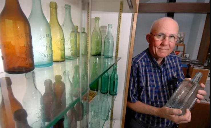 A partir de 1969, la mirada de su coleccionista recurrir a botellas antiguasEspecialmente aquellos de lecherías, farmacias y cervecerías del área de Augusta que revelaron pequeños capítulos de la historia local. Escribió y anunció Augusta sobre vidrio, historia de la ciudad reportarse a través de la evolución de las botellas de vidrio, en el año 2007.