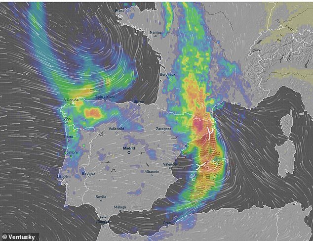 En otras partes de España, los lugareños corrieron a refugiarse al quedar atrapados por violentas tormentas.