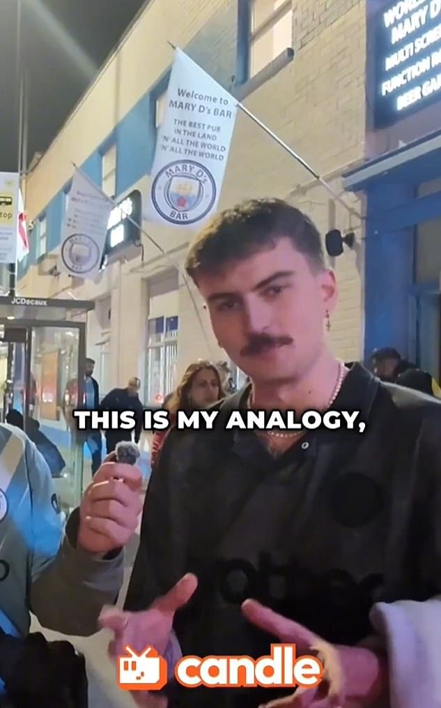 El hombre australiano anónimo se detuvo para una entrevista con X-User y Vlogger de Internet @chattacharms después de ganar el Manchester City 3-0 contra Bernie el sábado por la tarde.