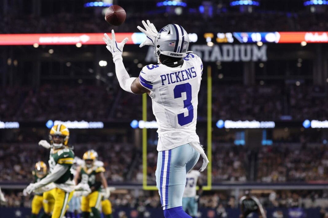 ARLINGTON, Texas – 28 de septiembre: George Pickens de Dallas Cowboys ha pasado un touchdown contra los Green Bay Packers en el segundo trimestre en el estadio AT&T el 28 de septiembre de 2025 en Arlington, Texas. (Foto de Sam Hode/Getty Fig.)