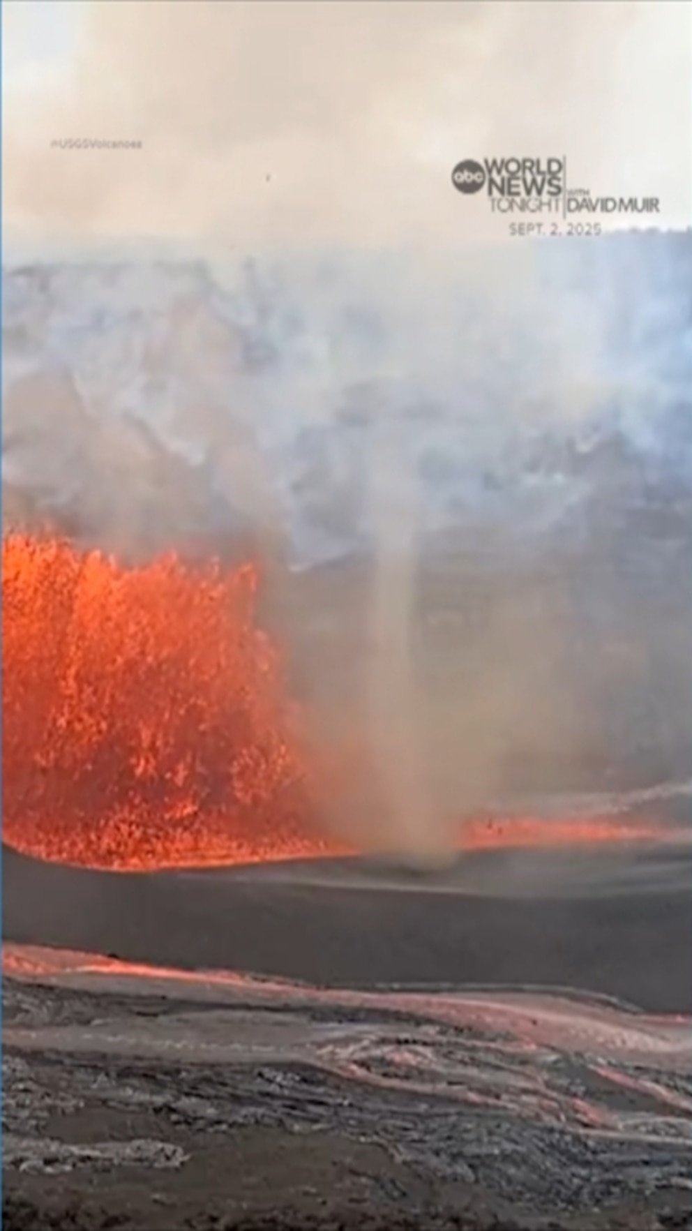 Una cámara viva capturada en el momento en que un ciclón hizo el depósito de cenizas pateando. Según el USGS, los ciclones son causados ​​por una mezcla caótica y turbulenta de aire caliente y frío.