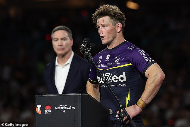 La estrella de Melbourne, Harry Grant, fue vista con los funcionarios de NRL después de que el árbitro de la Gran Final Grant Atkins decidió no enviar a la estrella de Brisbane Brancos Reese Walsh a Sin Bin para un tackle más alto en Xavier Coats, Storm.