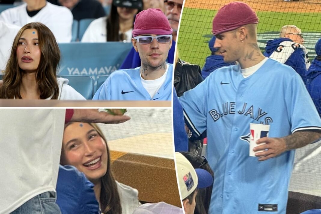 Hailey Bieber y Justin Bieber sacudieron el Dodger Stadium el lunes por la noche.