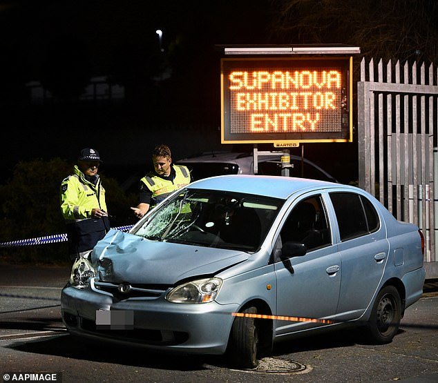 Awer Dau está acusado de conducir un Toyota (arriba) en un trío de hombres afuera del evento Supanova Comic Con and Gaming en el Melbourne Showgrounds el sábado.