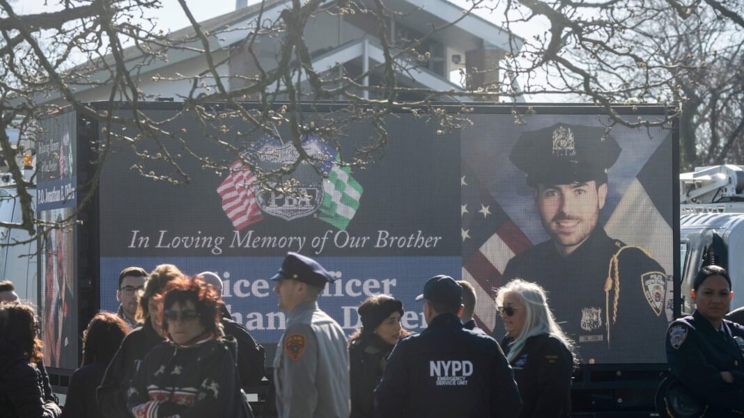 En ese momento, Diller era el primer oficial de policía de Nueva York asesinado en cumplimiento de su deber en dos años. Velatorio y funeral para el hombre de 31 años en su ciudad natal de Long Island Miles de dibujos humano, Incluyendo al presidente Donald Trumpy litigio se convierte en breve Un punto central durante su campaña de 2024 es restaurar el mensaje de “ley y orden” en la Casa Blanca.