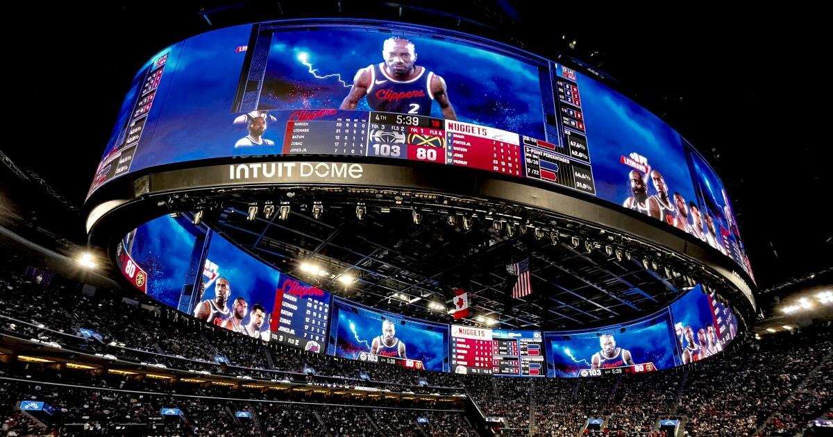 El Intuit Dome se inauguró en 2024 para los Clippers. Elogiado por su uso innovador de la tecnología, tableros de halo gigantes y grandes secciones de fanáticos apodadas “The Wall”, el proyecto del propietario de los Clippers, Steve Ballmer, ya aseguró los derechos de hospedaje del Juego de Estrellas de la NBA en febrero.