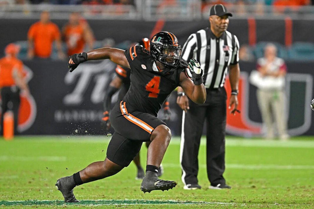 Ruen Bain, Junior y Miami Hurricanes recibirán a Notre Dame Fighting Irish el domingo, aquí es cómo ver aquí. (A través de la imagen de Gatety Samuel Lewis/Icon Sportsware)