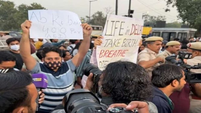 Los manifestantes ondeaban pancartas que decían “Derecho a la vida, no sólo a la supervivencia”, mientras que otra pancarta decía “La vida en Delhi: nacer, respirar, morir”. Exigió que el gobierno debería tomar medidas para reducir la contaminación.