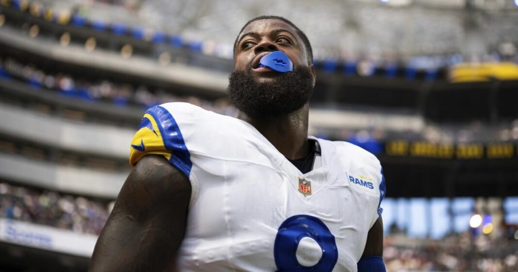 El lineback de los Rams, Jared Versse, caminó en el campo antes de ganar los Houston Texans en el estadio Sophie en septiembre de septiembre.