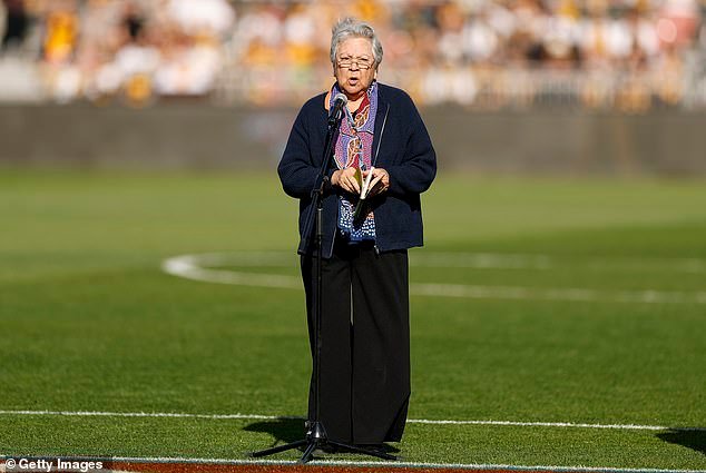 La tía Joan Bell dio la bienvenida al país durante más de cuatro minutos y medio antes de la final de Hathorne contra GWS el sábado