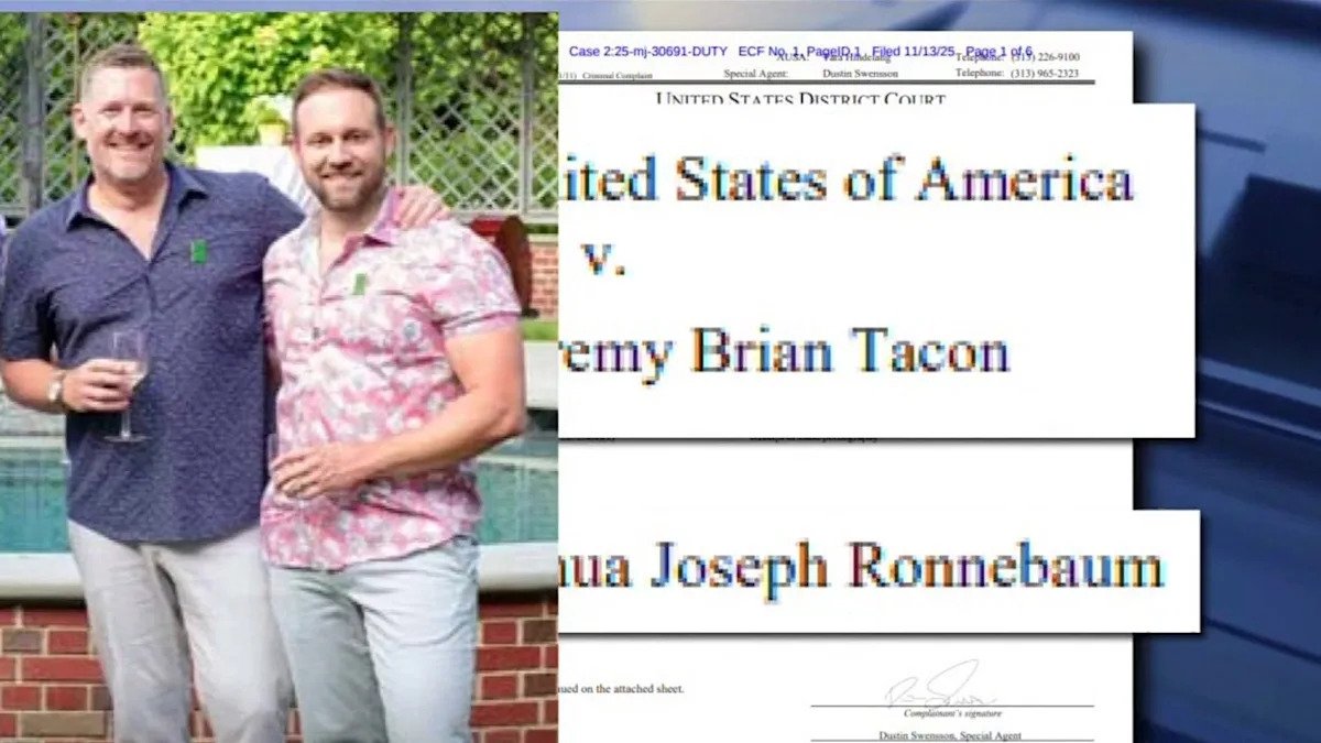 Según Quejas Federales, Joshua Ronnebaum, de 45 años, y Brian Tacon, de 51, que vive en la misma casa en Palmer Woods en Detroit, habían intercambiado mensajes afirmando que tenían el video y las fotos o habían intentado verlos.