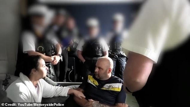 Las imágenes de la cámara corporal de la policía publicadas por la policía de Merseyside muestran el momento en que llegaron los agentes para arrestar a Steven Naylor en su casa en St Helens. Naylor y su esposa, Lisa, continuaron fingiendo que había sufrido una lesión cerebral grave.