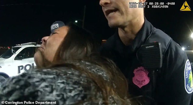 La mujer de 34 años explicó que estaba bien y le pidió que la dejaran sola, pero oFficer Ollrich insistió y dijo: “Si no sales, te estoy arrastrando fuera del auto, y realmente no quiero hacerlo”.