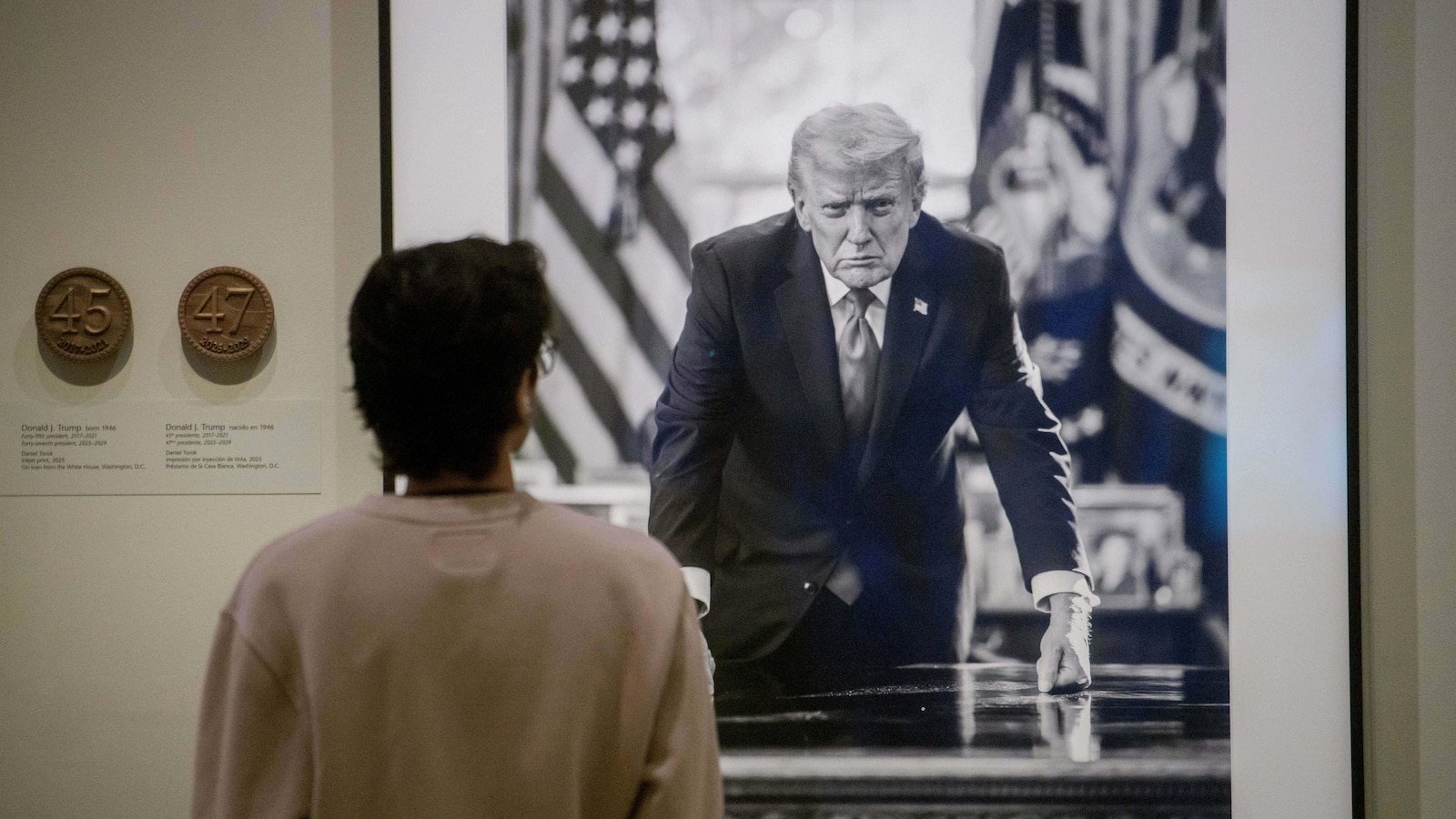 El texto del muro, que resume la primera presidencia de Trump y menciona su victoria en el regreso en 2024, era parte de la exposición “Presidentes estadounidenses” del museo. La descripción se colocó junto a una fotografía tomada durante el primer mandato de Trump. Ahora, sin embargo, aparece una foto diferente sin un bloque de texto que la acompañe. El texto estaba disponible en línea. Trump es el único presidente cuya exposición en la galería, como se vio el domingo, no incluía ningún texto extendido.