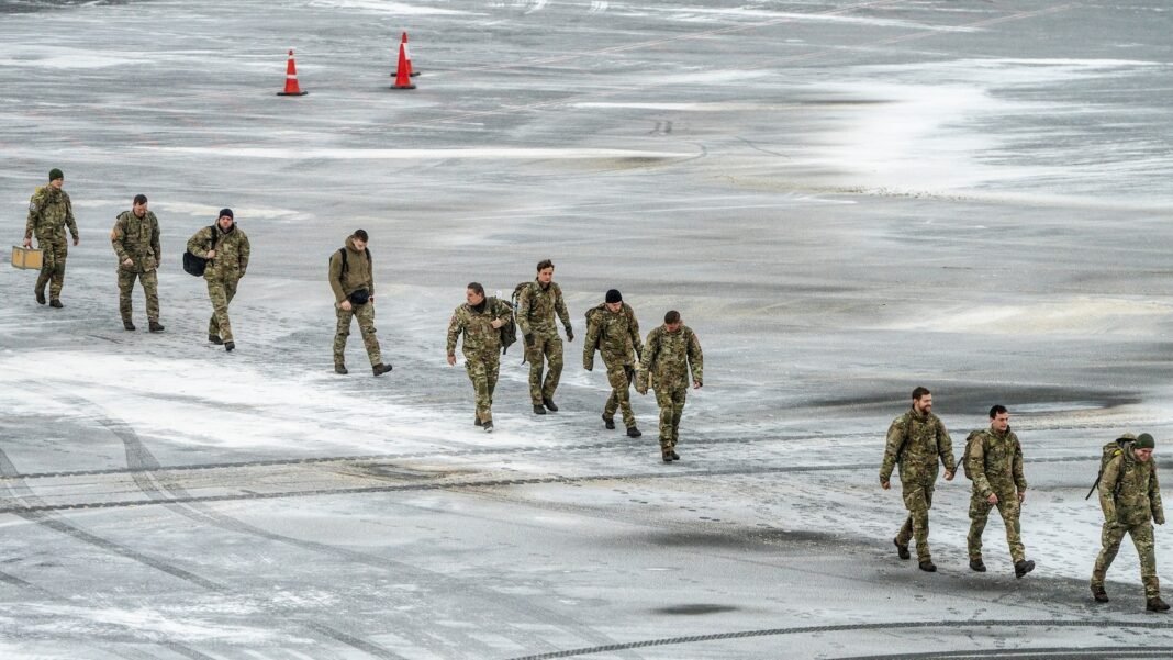 Soldados daneses aterrizando en el aeropuerto de Nuuk, el 19 de enero de 2026.