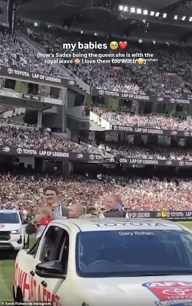 La ex esposa de Gary Rohan ha sido vista un video publicado en su cuenta de Instagram para sostener a su bebé con su nueva pareja Madi, mientras ella y sus hijos completaron el honor antes de la gran final de la AFL del sábado.
