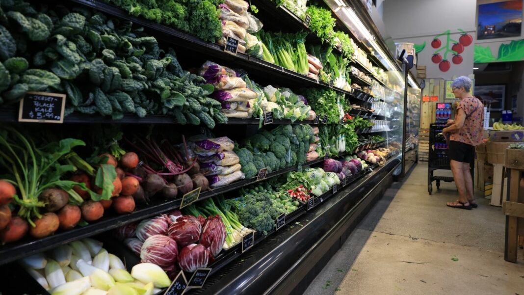 Las verduras se exhiben en la tienda de comestibles el 15 de agosto de 2025 en Florida Daure.