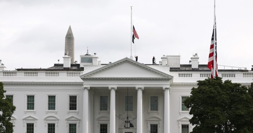 Por la noche, las banderas en el campus fueron semi-personal. Al menos un veterano funcionario de la Casa Blanca pudo ver un solo gesto fuera de la puerta del ala oeste, limpiando las lágrimas.